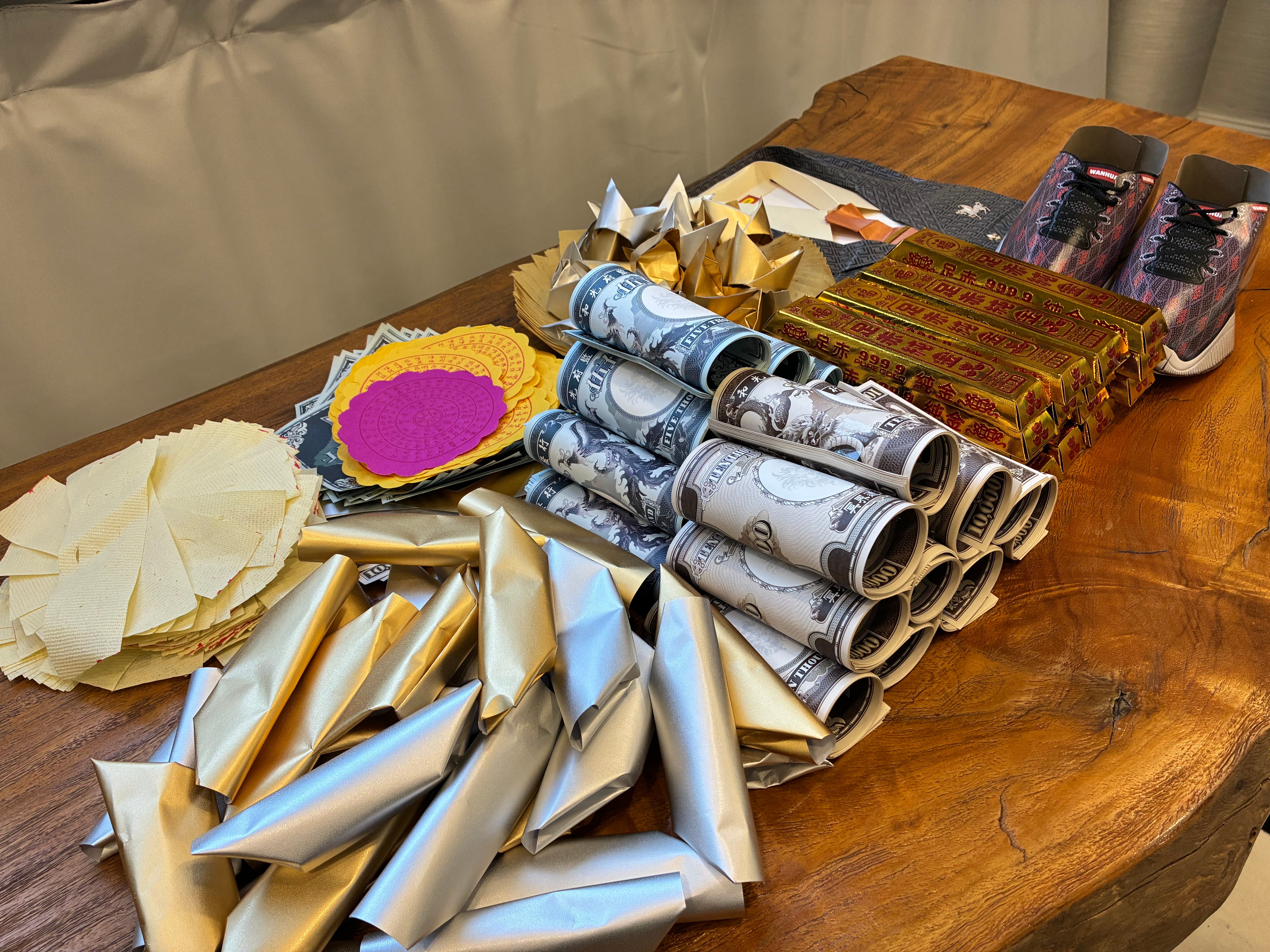 原價中衣包$148 + 代拜祭服務$50 共:$198 #和光府 男/女 中衣包: 內有 溪錢、紙元寶、金條、金元寶、往生咒、衣服、鞋 高:40cm 闊:32cm
