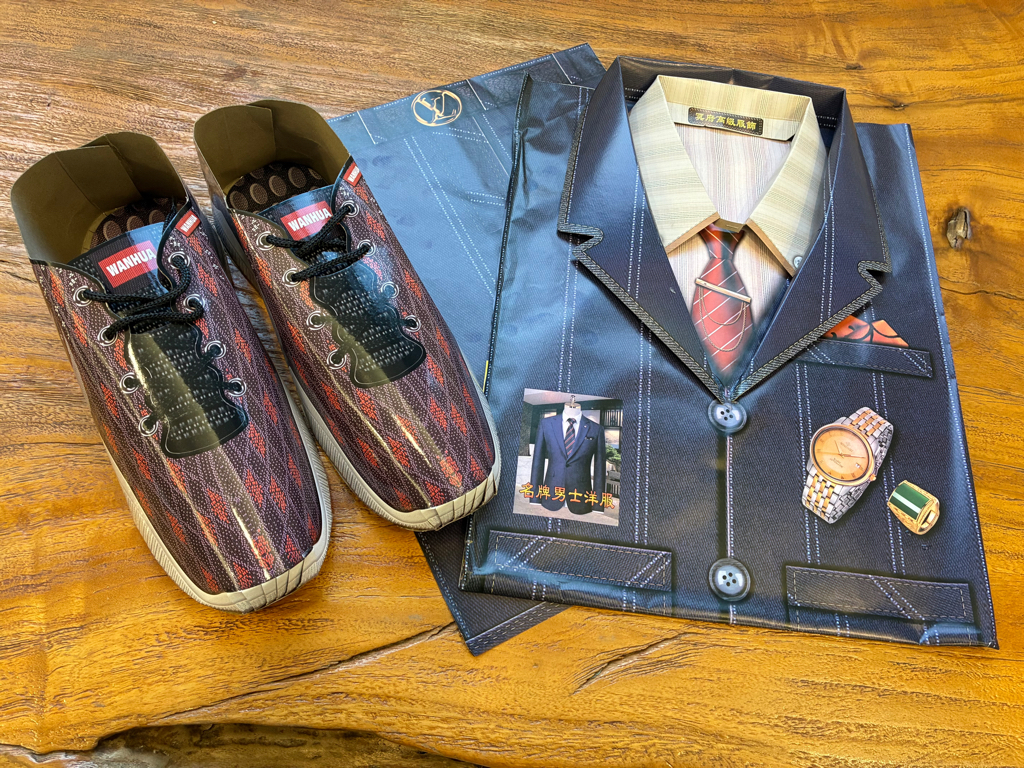 原價大衣包$188 + 代拜祭服務$50 共:$238 #和光府 男/女 大衣包: 內有 溪錢、紙元寶、金條、金元寶、往生咒、衣服、鞋 高:55cm 闊:42cm